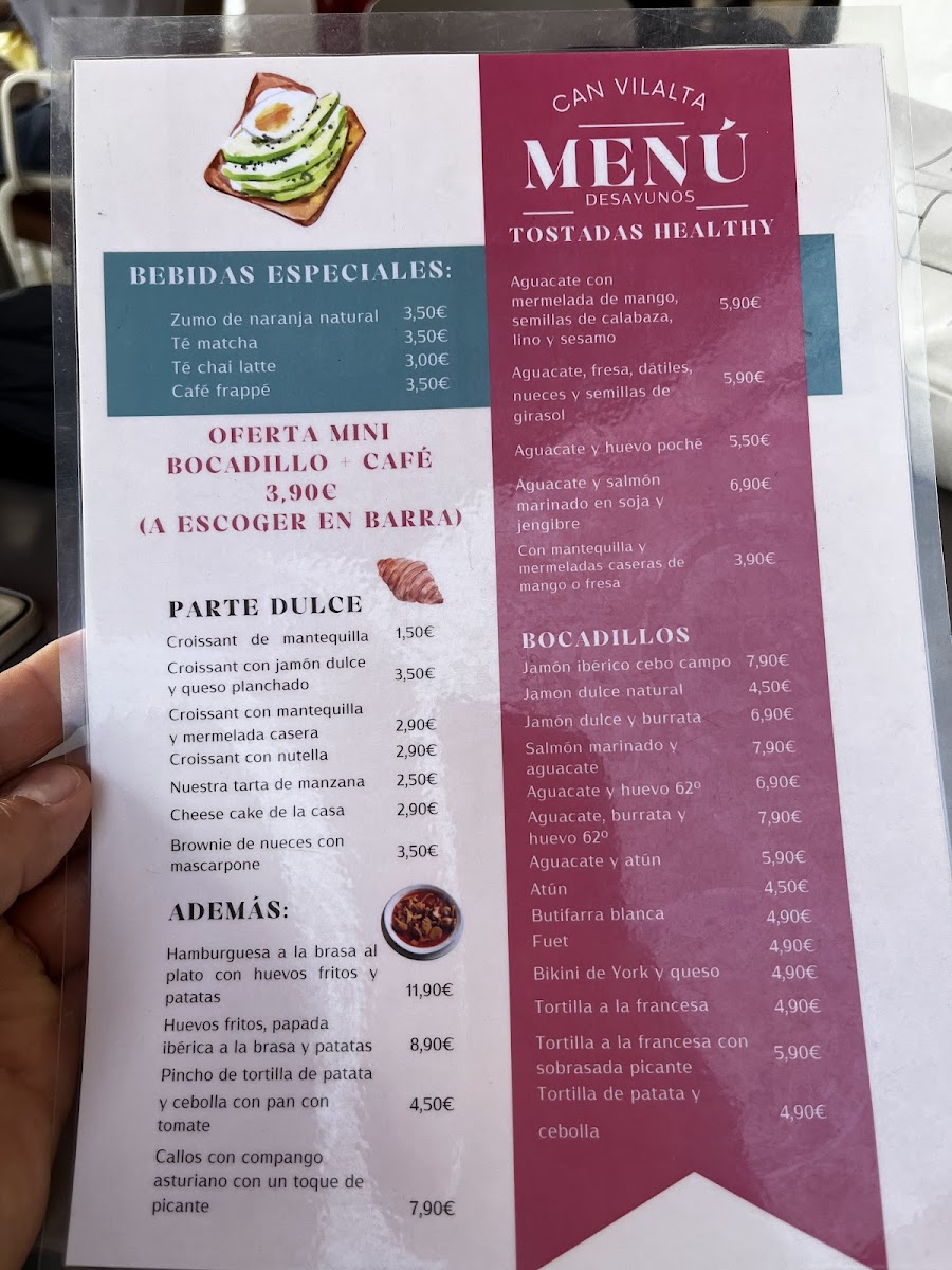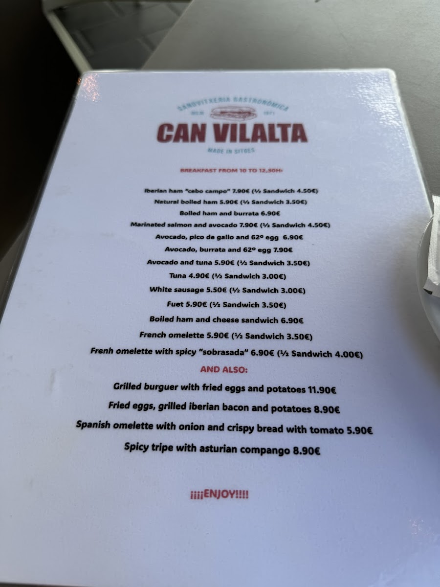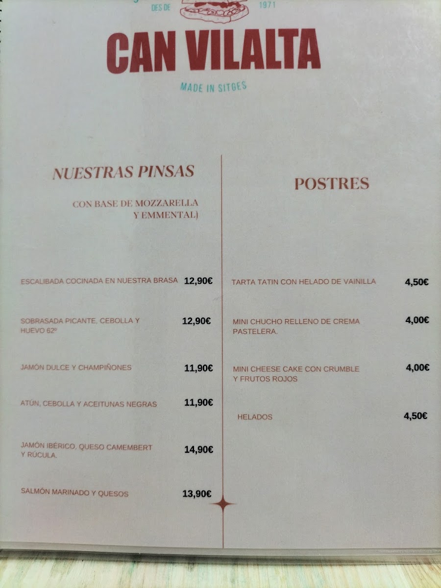 Overall, Sandwichería Can Vilalta delivers a rich menu with something for every taste, from savory pinsas and sandwiches to refreshing drinks and indulgent desserts, making it a must-visit destination in Sitges.